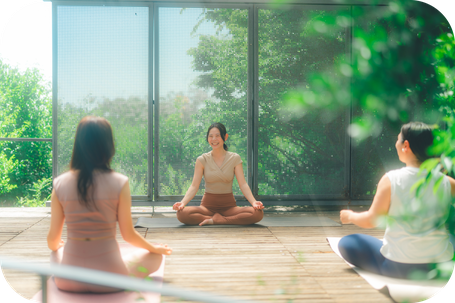ヨガで大切な“呼吸”に集中できるようクラスを行います。
